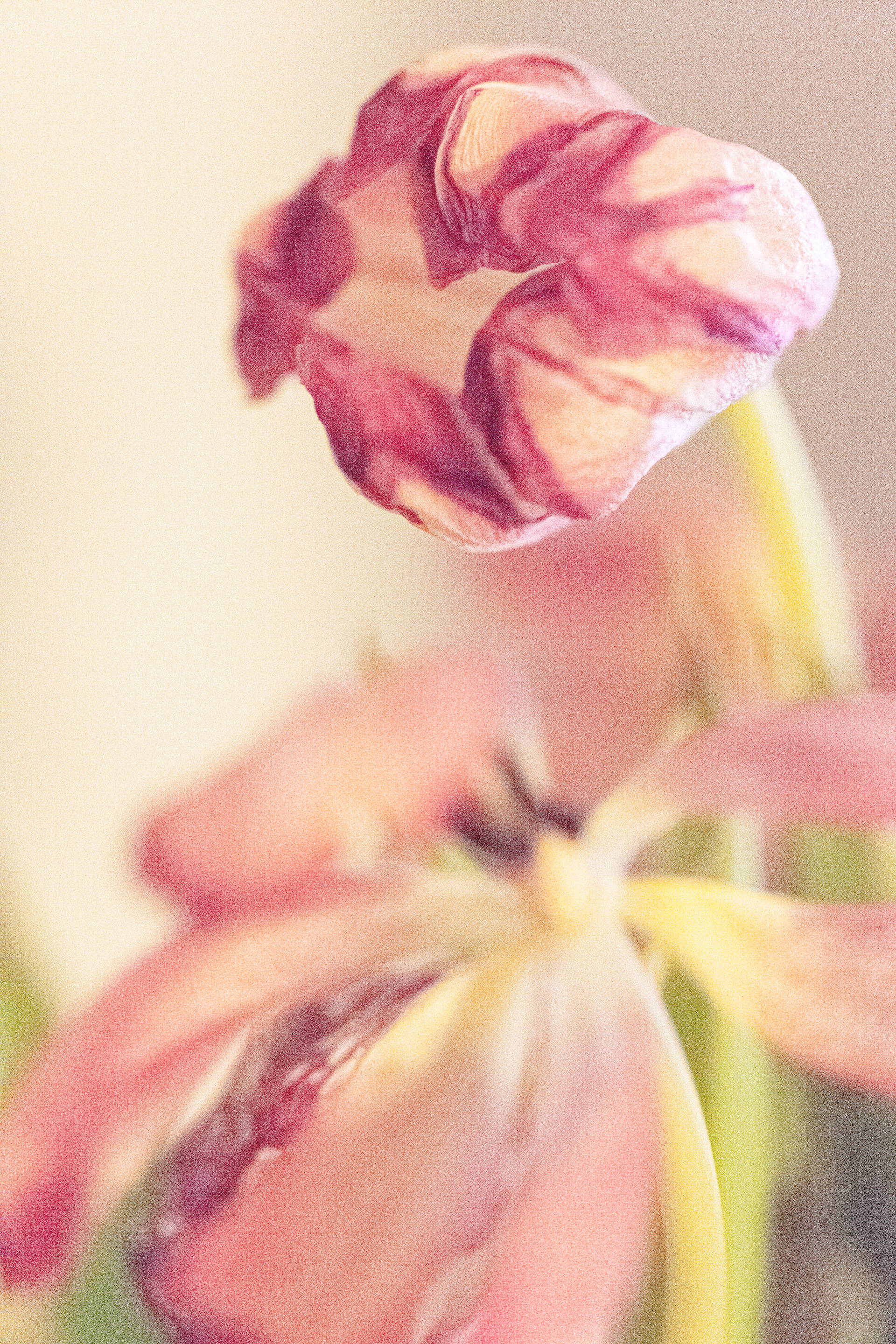 Får nu inte just vissnande tulpaner en sista livsinjektion med denna fotograferingsteknik och bildbehandling? Med enkla kompositioner, avskalat innehåll, förvridna blad, ståndare och pistiller tycker jag mig fångat en blandning av sensualitet och aggressivitet, liv och död samt lust och smärta i samma bild.