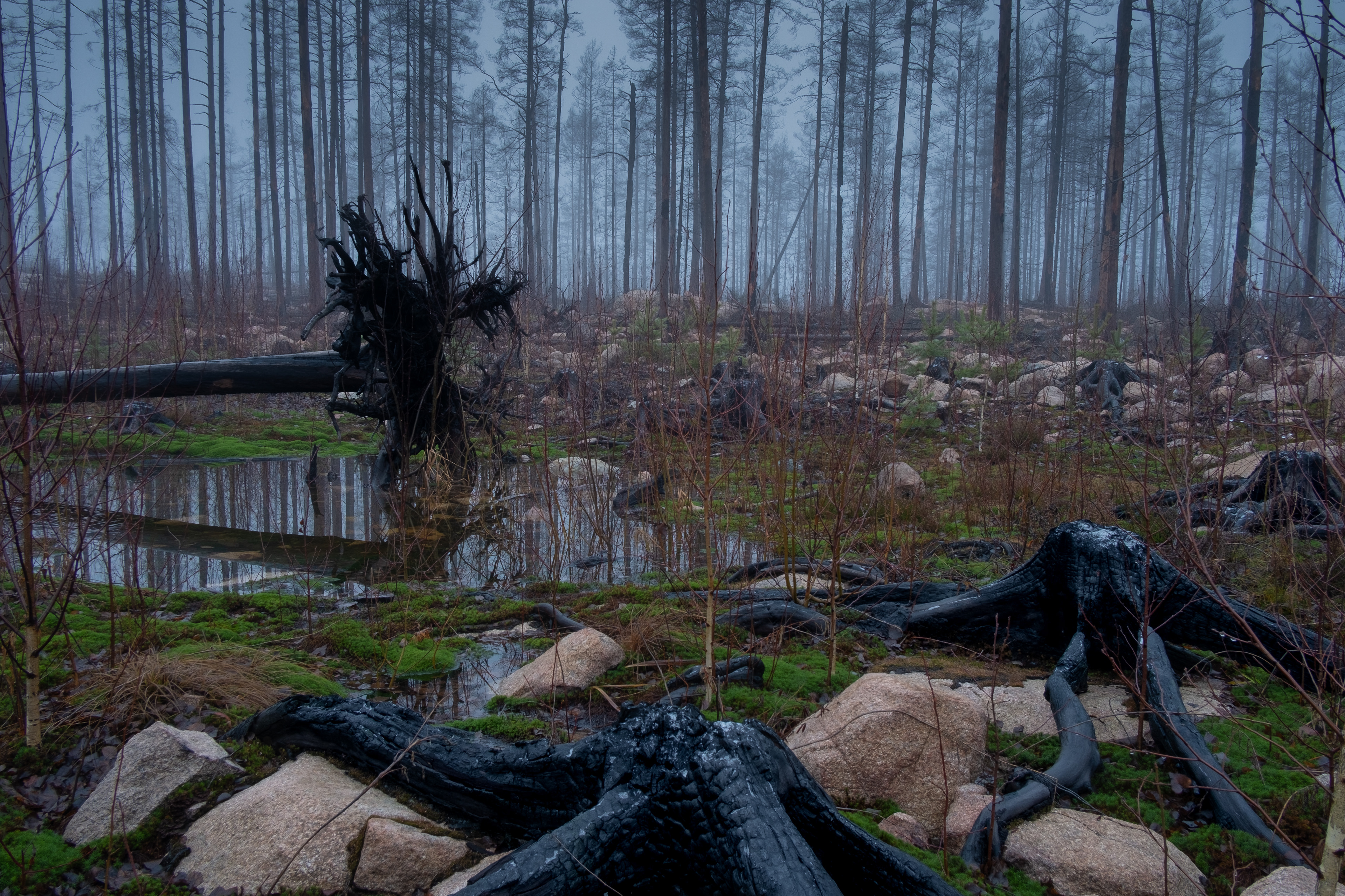 Brandskadad skog i Västmanland. Hälleskogsbrännan.